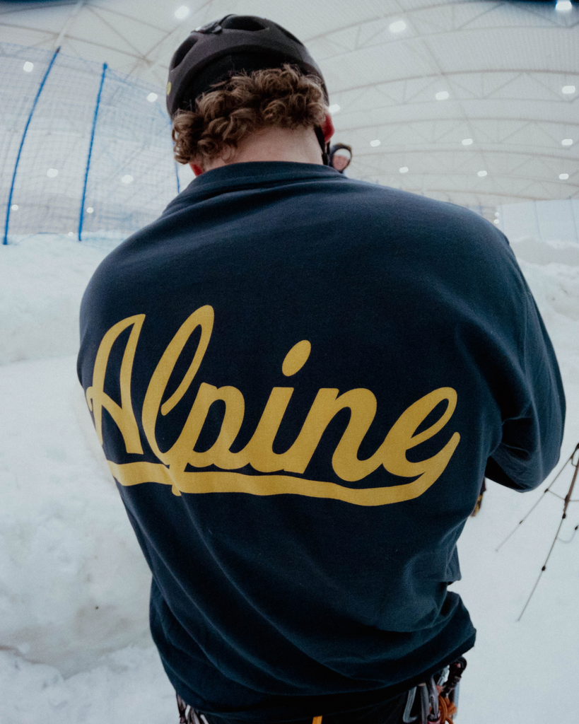 The Alpine Long Sleeve features logos on the front and back. Built in a comfortable fit, made of 100% cotton.